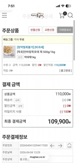 [묵호]언바람묵호태 채 500g/1kg